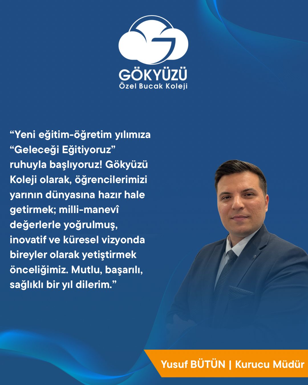GÖKYÜZÜ KURS MERKEZİ ve GÖKYÜZÜ ÖZEL BUCAK KOLEJİ olarak biz, sorgulayan genç beyinlerin bizimle öğrenmesi ve büyümesi için destekleyici ve ilham verici eğitim ortamları sunuyoruz. Öğrenme tutkumuz, olağanüstü sonuçlardan daha fazlasını elde ettiğimiz anlamına gelir. Kendine güvenen ve yaratıcı düşünürler yetiştirmeye çalışıyoruz ve onların geleceğine tecrübeli öğretmen kadromuzla gerçekten uygun bir eğitim sunmayı hedefliyoruz.