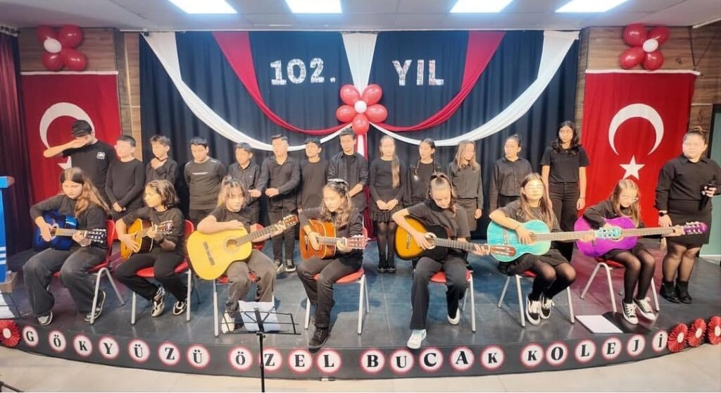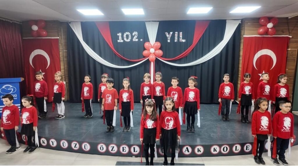Gökyüzü Koleji’nde 29 Ekim Cumhuriyet Bayramı büyük bir coşku ve gururla kutlandı. Öğrencilerin hazırladığı gösteriler, şiirler ve marşlar törene renk kattı. Tüm okul camiası, Cumhuriyet’in değerlerini yaşatmanın sevincini birlikte paylaştı.